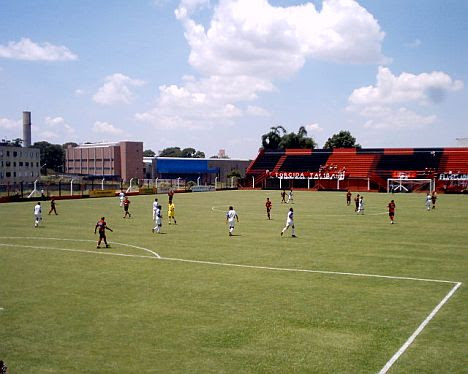 Agora vamos com os jogos na rodada dupla que fiz no domingo. Dois jogos debaixo de um sol infernal, com um calor mais infernal ainda e muito bloqueador solar e boné na sacola. De manhã, a pedida foi ver a estréia do Flamengo de Guarulhos em casa, jogando com o São José pela segunda rodada da Série A3 do Paulistão 2006. Comigo, o Emerson, o Jurandyr, o Seu Natal e por lá encontramos o Rafael Lusitano perdido no Antônio Soares de Oliveira.