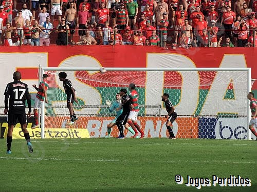 Pouco mais de 2 mil pessoas foram ao estádio e pagaram um valor alto pelo ingresso. Fez calor e o clima era de apreensão após dois resultados ruins. E antes mesmo do primeiro minuto, a torcida paulistana fez a festa. Em escanteio pela direita, Bruno Leonardo cabeceou fraquinho. O goleiro Cleiton foi defender e deixou a bola passar debaixo das pernas. Um frangaço clássico que facilitou o caminho da Portuguesa.